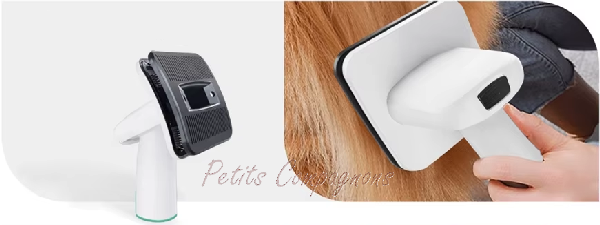 • Râteau à sous-poils et brosse auto-nettoyante: Ces outils éliminent efficacement les poils morts et les nœuds, laissant un pelage lisse et brillant. Grâce à leur connexion directe au tuyau d'aspiration, les poils sont aspirés automatiquement lors du brossage, garantissant un environnement propre et sans poils volants.