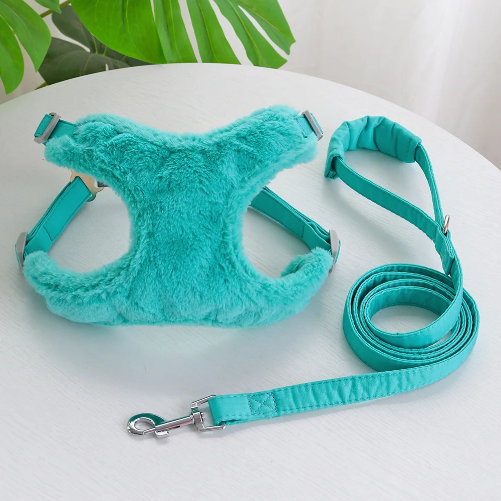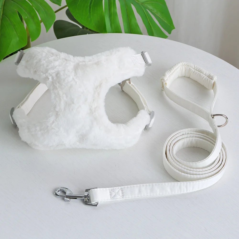 Avec cet ensemble de gilet harnais en fourrure et laisse,Les promenades en hiver resterons agréables pour votre animaux de compagnie